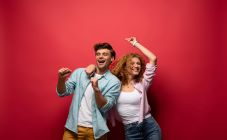 Female Artist Works on Abstract Oil Painting, Moving Paint Brush Energetically She Creates Modern Masterpiece. Dark Creative Studio where Large Canvas Stands on Easel Illuminated. Low Angle Close-up