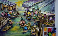 Female Artist Works on Abstract Oil Painting, Moving Paint Brush Energetically She Creates Modern Masterpiece. Dark Creative Studio where Large Canvas Stands on Easel Illuminated. Low Angle Close-up