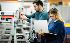 Young attractive students of mechatronics working on project
